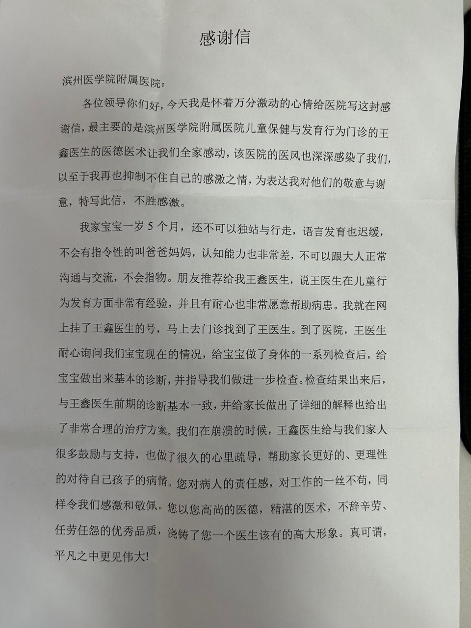 感谢信——儿童保健科